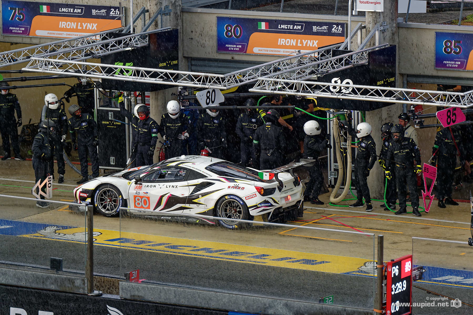 24 Heures du Mans 2022 - Voiture N° 80 Ferrari 488 GTE EVO - Ecurie : IRON LYNX - Catégorie LM GTE Am - nationalité : ITA - Pilote 1 : Matteo Cressoni (ITA) Pilote 2 : Giancarlo Fisichella (ITA) Pilote 3 : Richard Heistand (USA) Image réalisée le 8 Juin 2022 lors des essais des 24 Heures du Mans