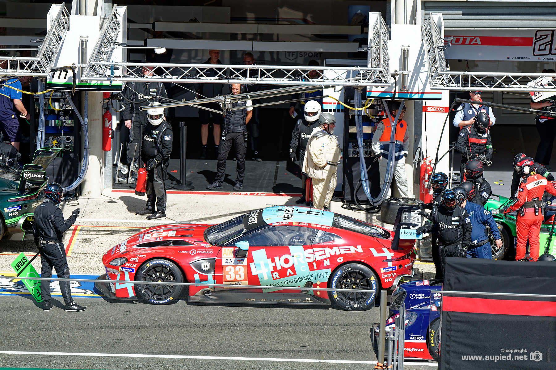 24 Heures du Mans 2022 - Voiture N° 33 Aston Martin Vantage AMR - Ecurie : TF SPORT - Catégorie LM GTE Am - nationalité : GBR - Pilote 1 : Ben Keating (USA) Pilote 2 : Henrique Chaves (PRT) Pilote 3 : Marco Sorensen (DNK) Image réalisée le 8 Juin 2022 lors des essais des 24 Heures du Mans