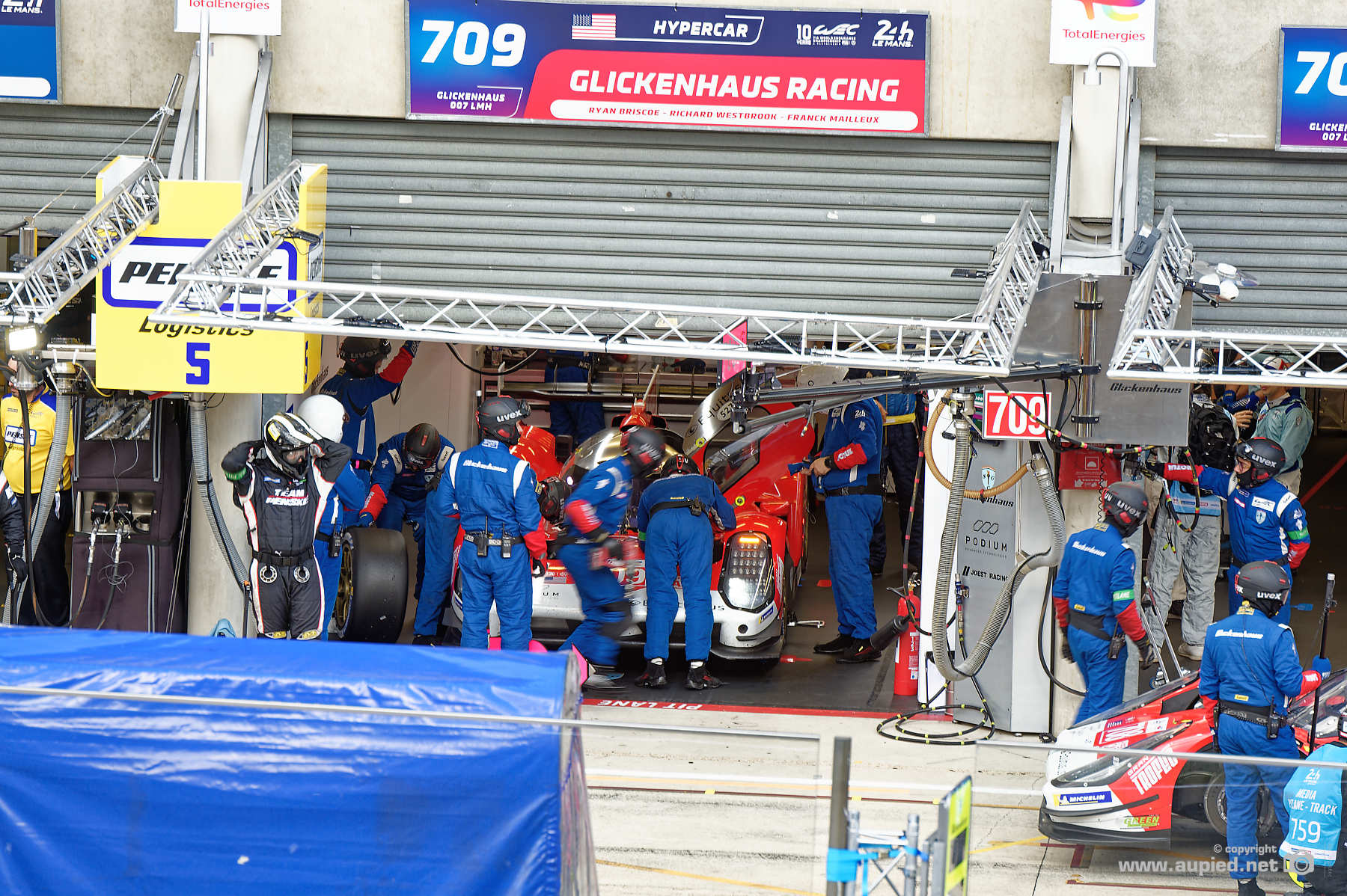 24 Heures du Mans 2022 - Voiture N° 709 Glickenhaus 007 LMH - Ecurie : GLICKENHAUS RACING - Catégorie Hypercar - nationalité : USA - Pilote 1 : Ryan Briscoe (AUS) Pilote 2 : Richard Westbrook (GBR) Pilote 3 : Franck Mailleux (FRA) Image réalisée le 8 Juin 2022 lors des essais des 24 Heures du Mans