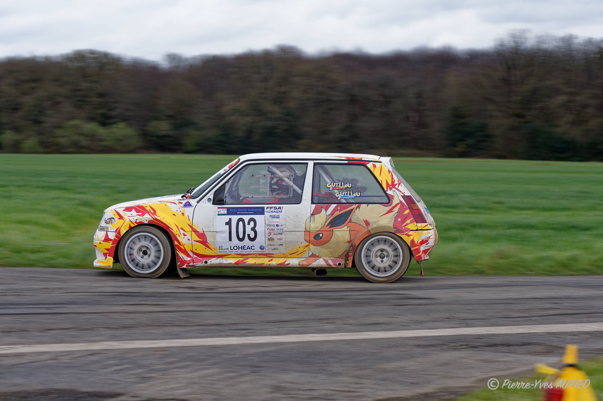 Rallye du Pays de Lohéac 2023 le 1er et 2 Avril - La voiture numéro 103 - Renault 5 Gt Turbo , Pilote Fabrice GUILLOU - Co-pilote Margot GUILLOU - Groupe : F RNat - classe : F214
