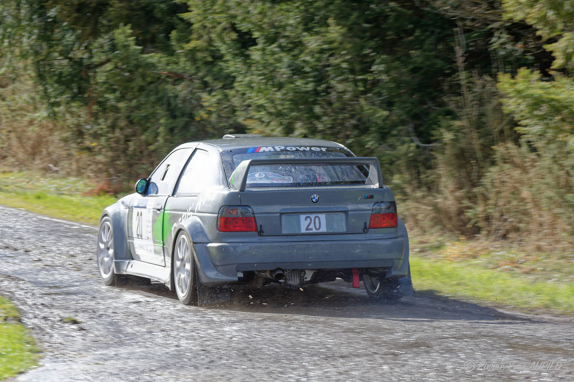 Rallye du Pays de Lohéac 2023 le 1er et 2 Avril - La voiture numéro 20 - BMW 318I Compact , Pilote Fabrice BEZIEAU - Co-pilote Tatiana BOUCARD - Groupe : F RNat - classe : F214
