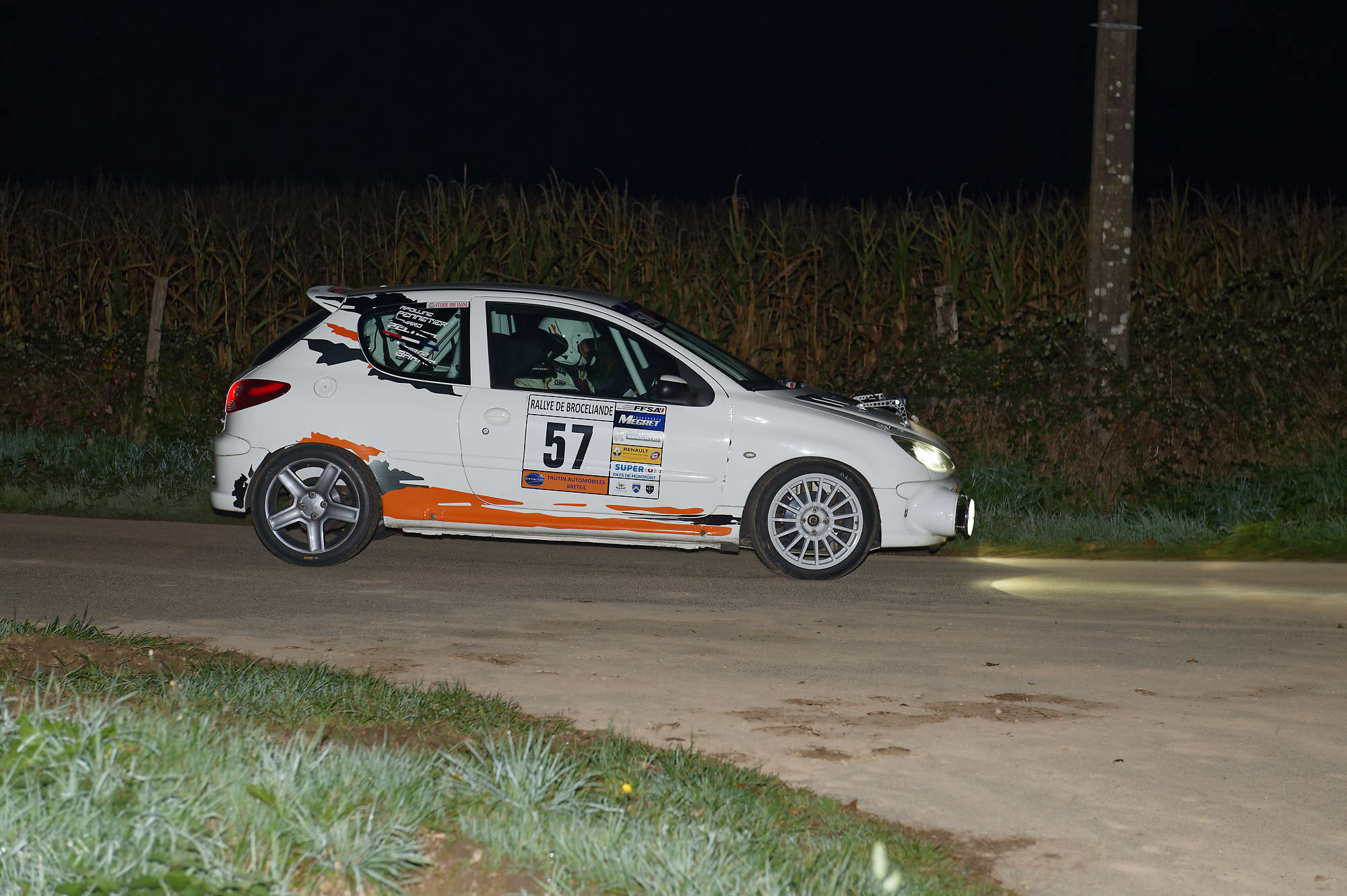 Le pilote PENNETIER Alexandre et la copilote PENNETIER MOREAU Apolline sur Peugeot 206 n°57 en groupe FRC4 - en classe A7 au rallye de Brocéliande 2024