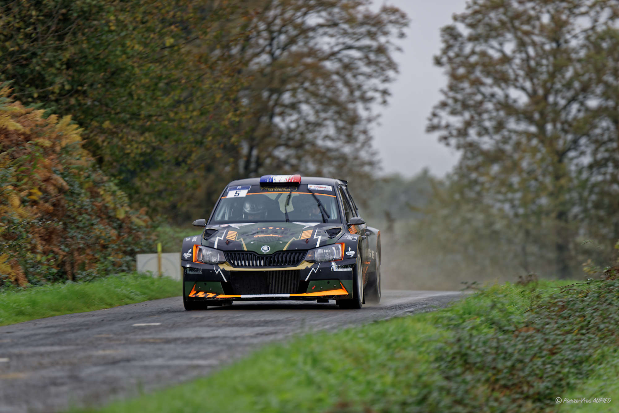 Le pilote BORDAGARAY Jeremy et le copilote RENAULT Pierre sur Skoda Fabia n°5 en groupe FRC2 - en classe Rally2 au Rallye de Brocéliande le 16 et 17 Novembre 2024